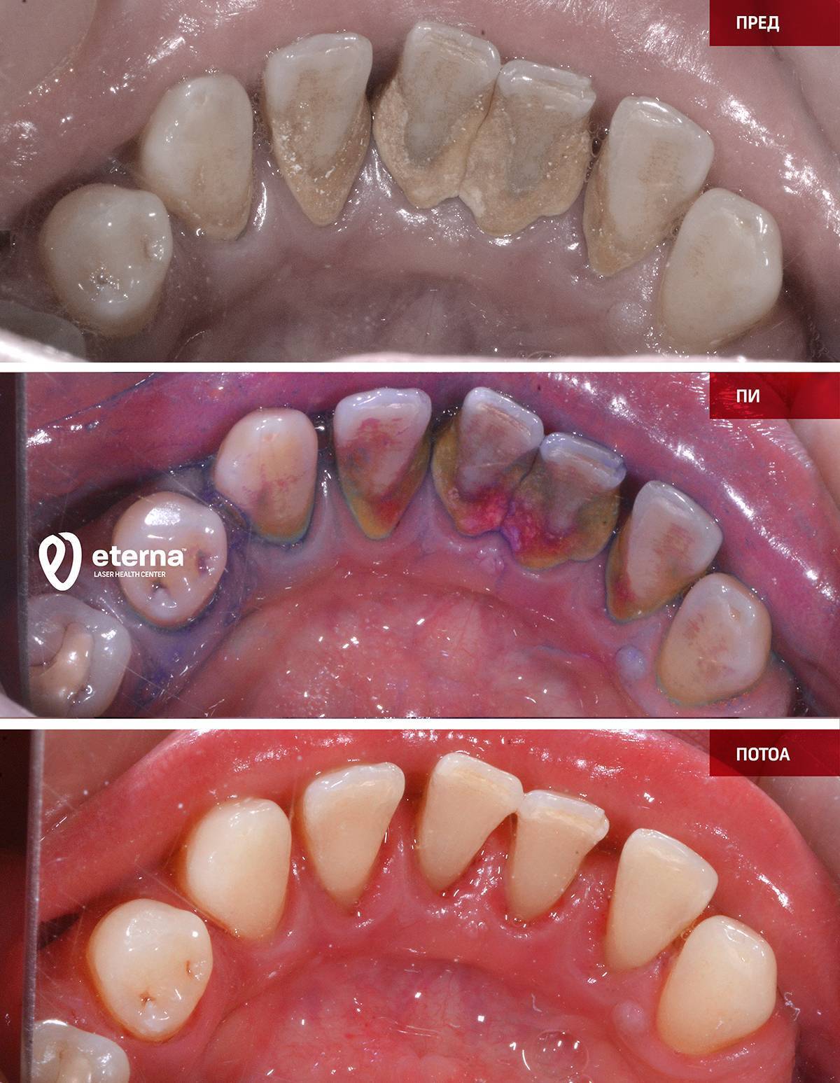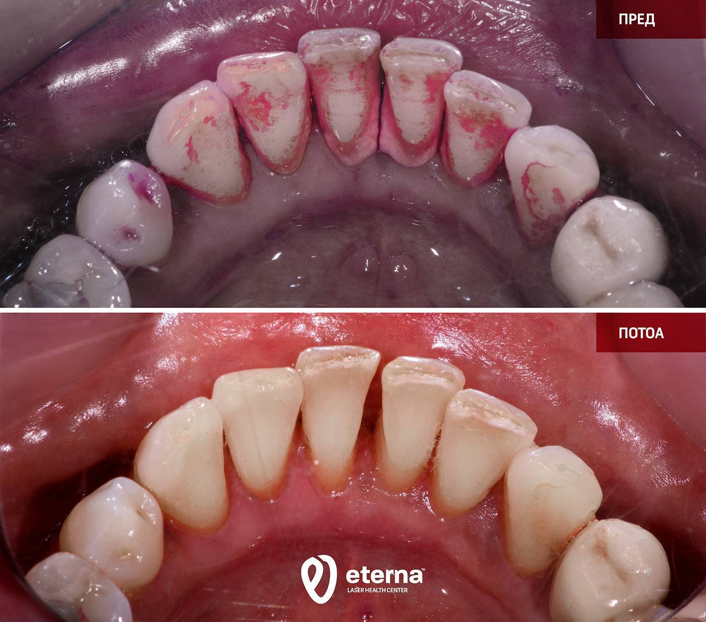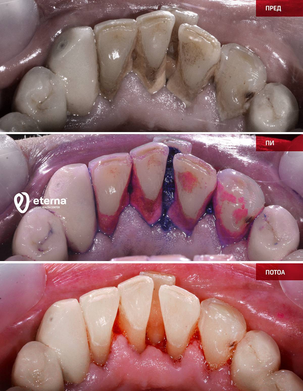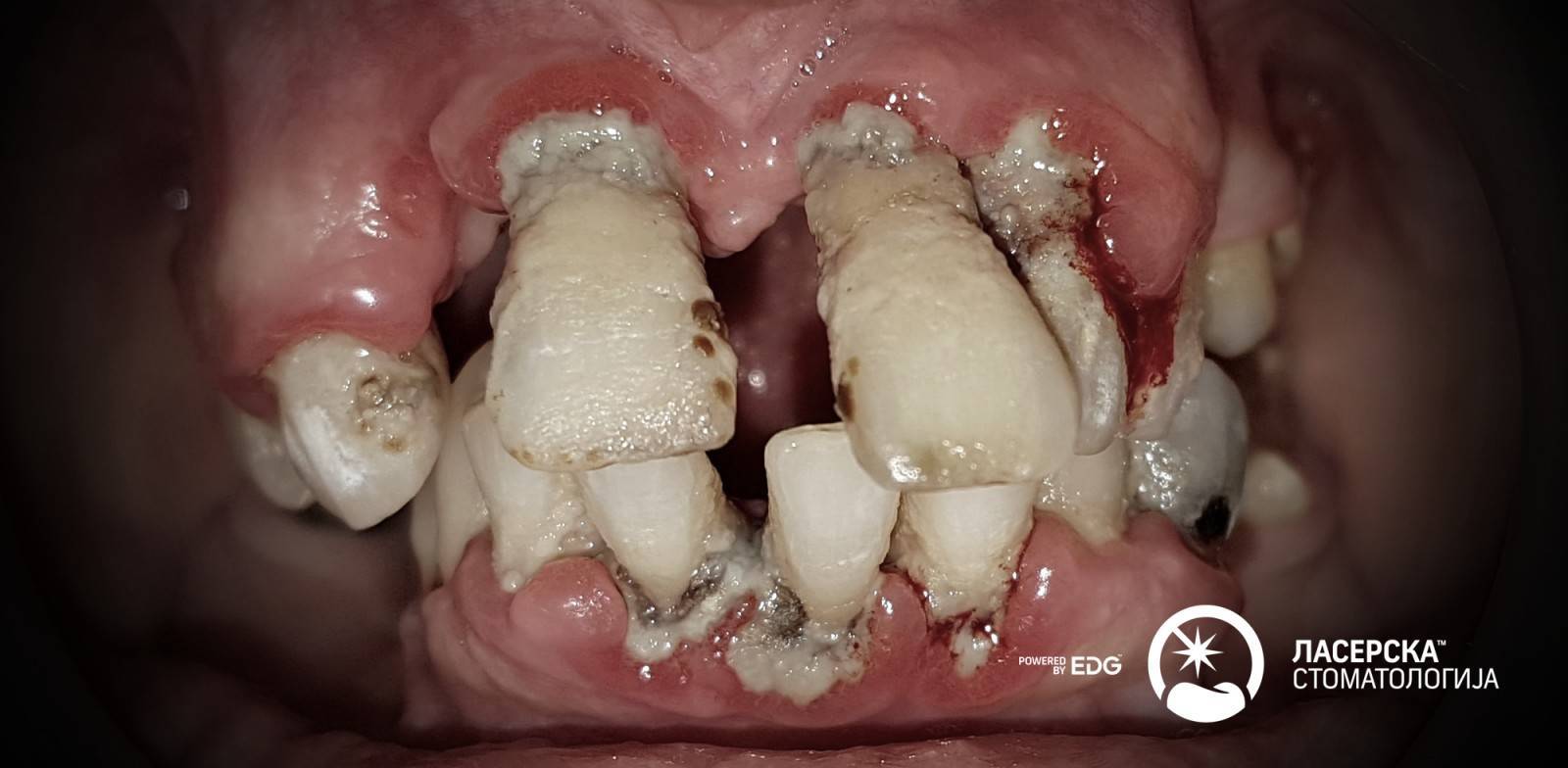 Τα ούλα που αιμορραγούν, οι περιοδοντικοί θύλακες, τα οίδημα ή τα υποχωρούντα ούλα, καθώς και η αλάτωση, αποτελούν ένδειξη για ασθένειες του περιοδοντίου. Αυτές οι ασθένειες μπορούν να αντιμετωπιστούν από την εξειδικευμένη ομάδα μας, που σχηματίστηκε από την EDG και την Eterna LHC στο Γευγελή και τα Σκόπια, ακόμη και σε εξαιρετικά σοβαρές περιπτώσεις.