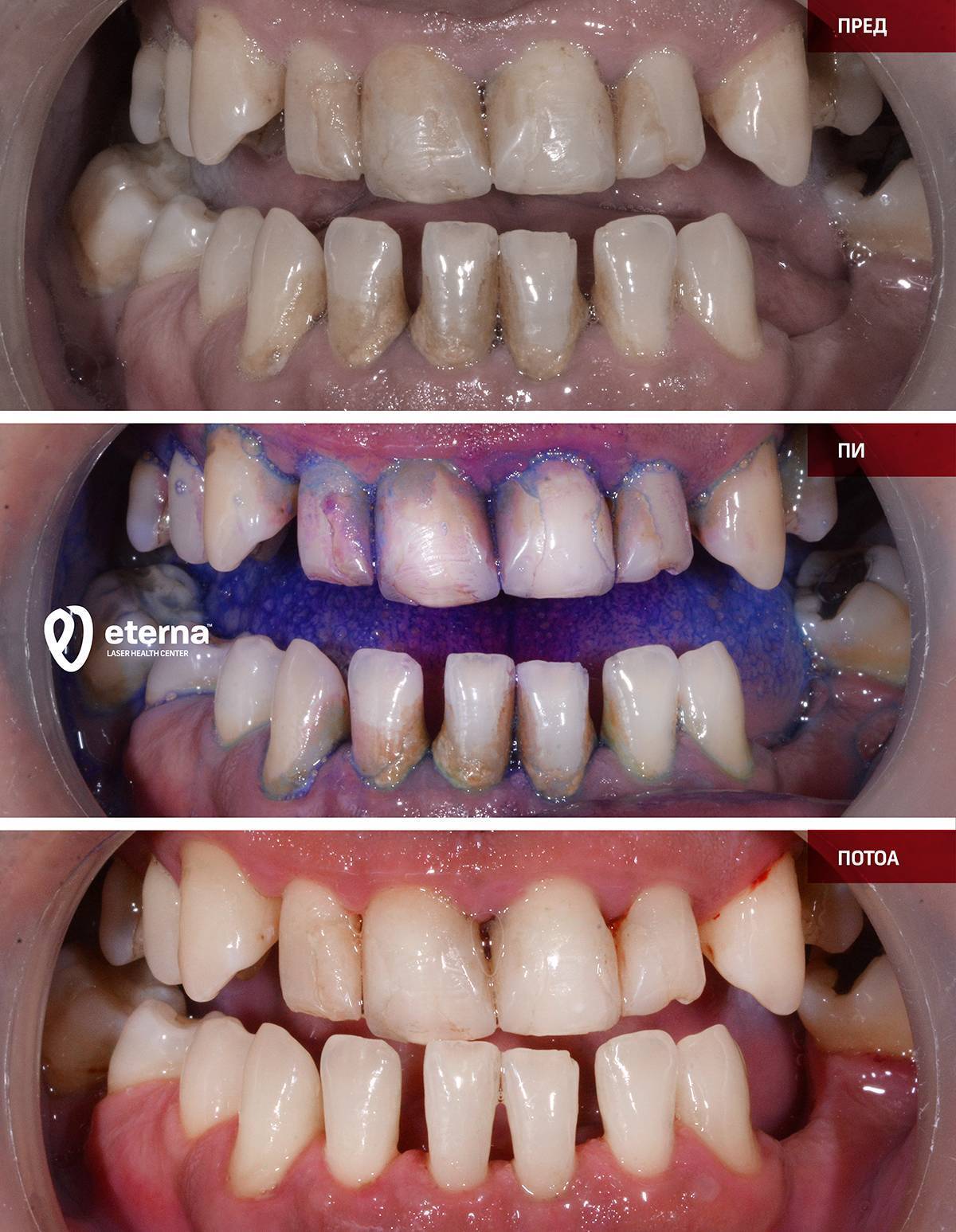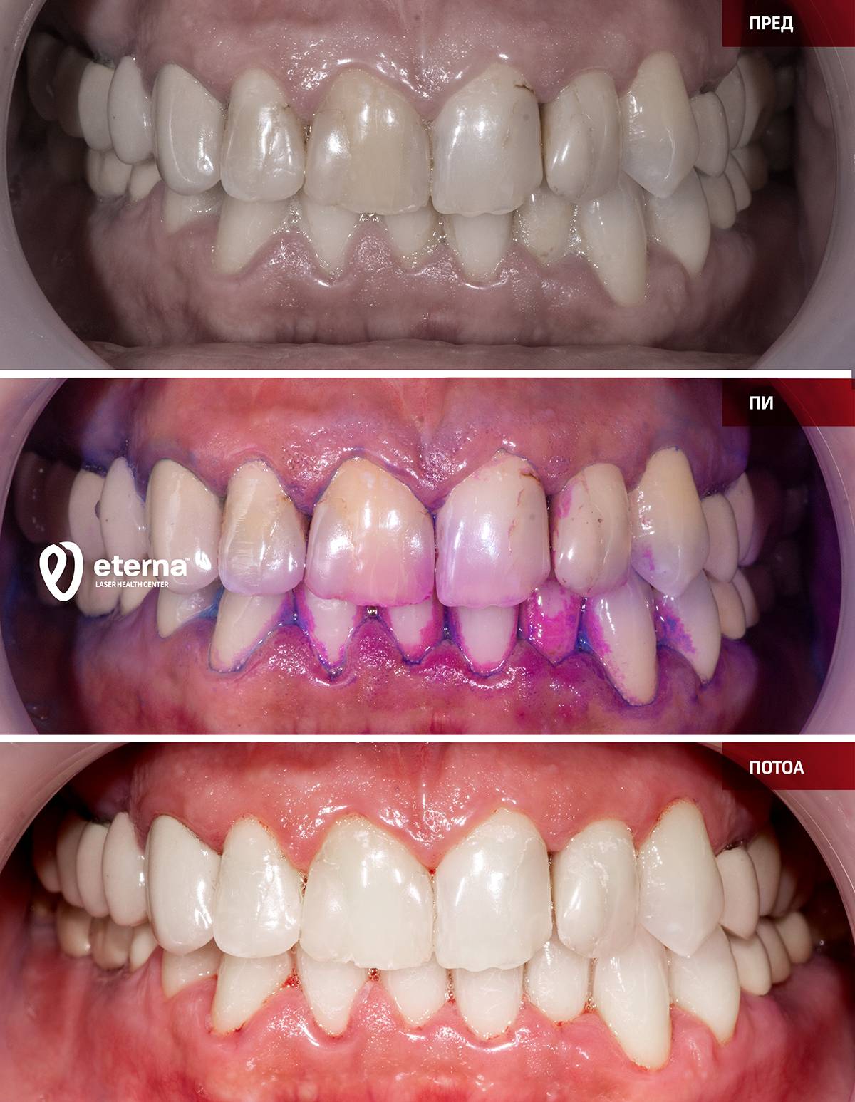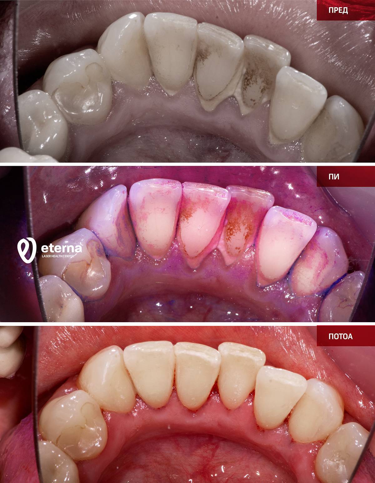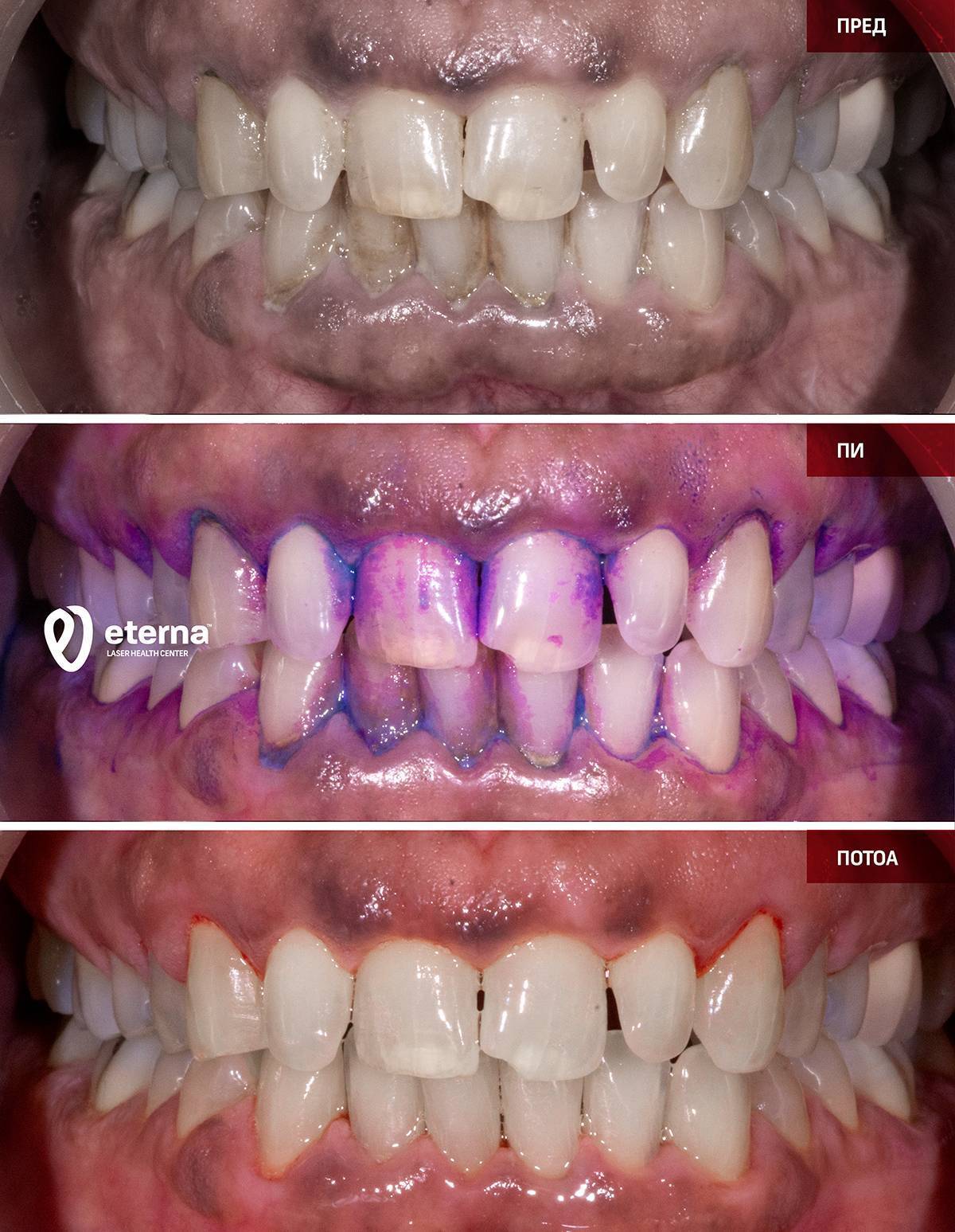 Τα ούλα που αιμορραγούν, οι περιοδοντικοί θύλακες, τα οίδημα ή τα υποχωρούντα ούλα, καθώς και η αλάτωση, αποτελούν ένδειξη για ασθένειες του περιοδοντίου. Αυτές οι ασθένειες μπορούν να αντιμετωπιστούν από την εξειδικευμένη ομάδα μας, που σχηματίστηκε από την EDG και την Eterna LHC στο Γευγελή και τα Σκόπια, ακόμη και σε εξαιρετικά σοβαρές περιπτώσεις.